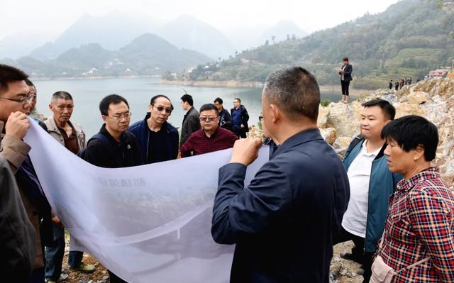 ▲ 峡洞岩大桥桥址,当地群众听取工程师介绍大桥设计方案,观看大桥效果图。 摄影:金文霞