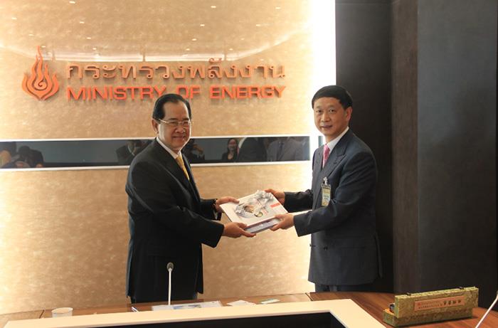 泰国能源部部长向林初学副总经理赠送泰国能源部纪念册。