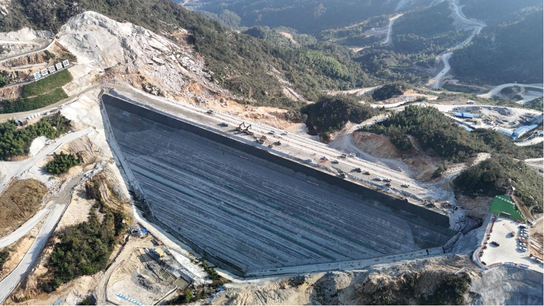 ▲ 平坦原抽水蓄能电站上水库主坝填筑到顶