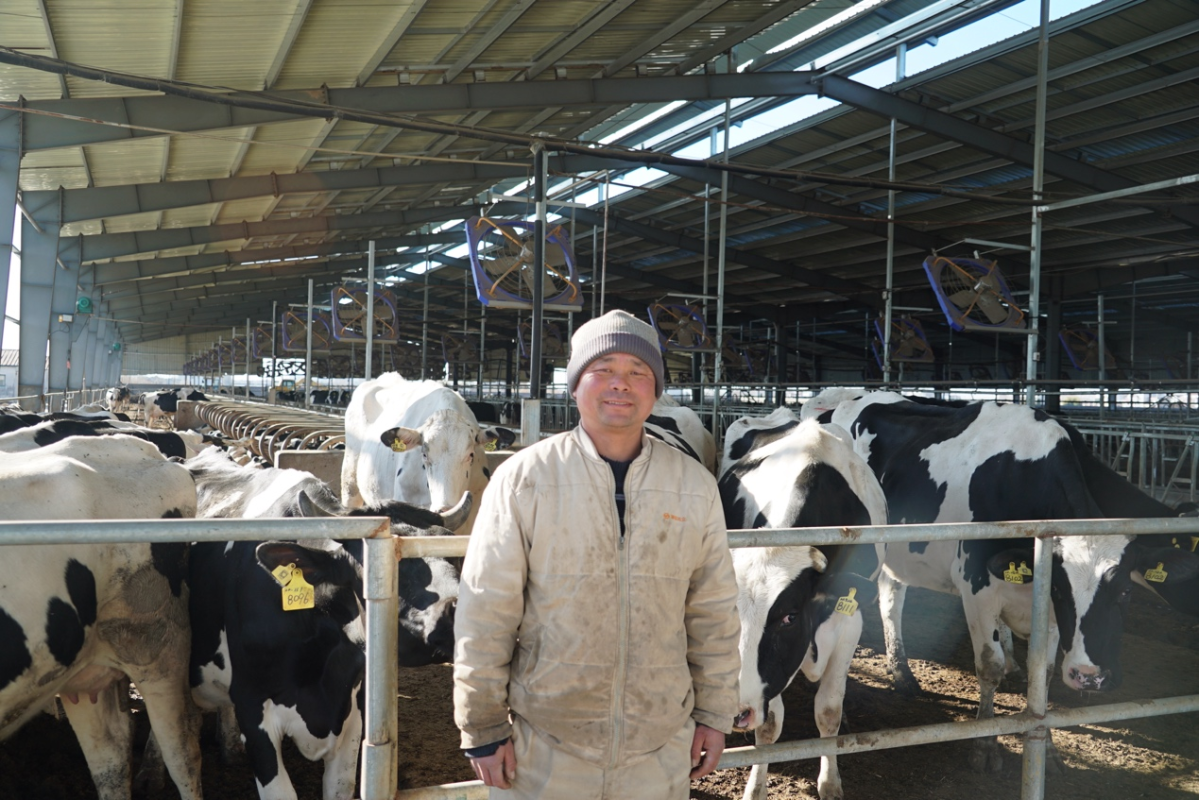 宝仁奶牛场场长张海祥与奶牛养殖基地(摄影:杨津)
