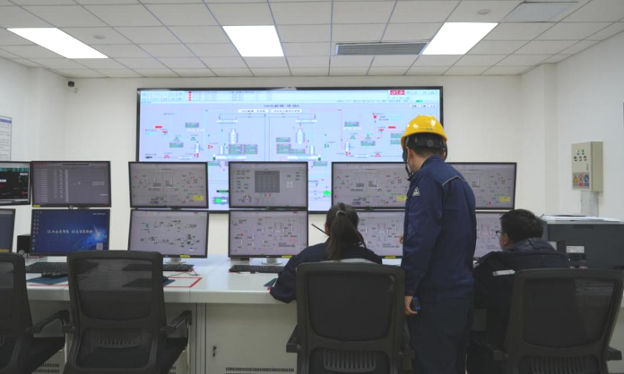 走进项目中控室,在巨大的电子显示屏上,制氢全工艺数据被实时刷新,绿氢压力、纯度、产量等关键指标清晰呈现;生产车间内,6台碱水电解槽高效运行,光伏绿电在此被转化为高纯绿氢。